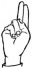 На ћирилици написано ВОЈИН ЧЕШЉАРАЦ састоји се из 13 слова [?]. Исписано ћириличном једноручном азбуком за глувонеме: